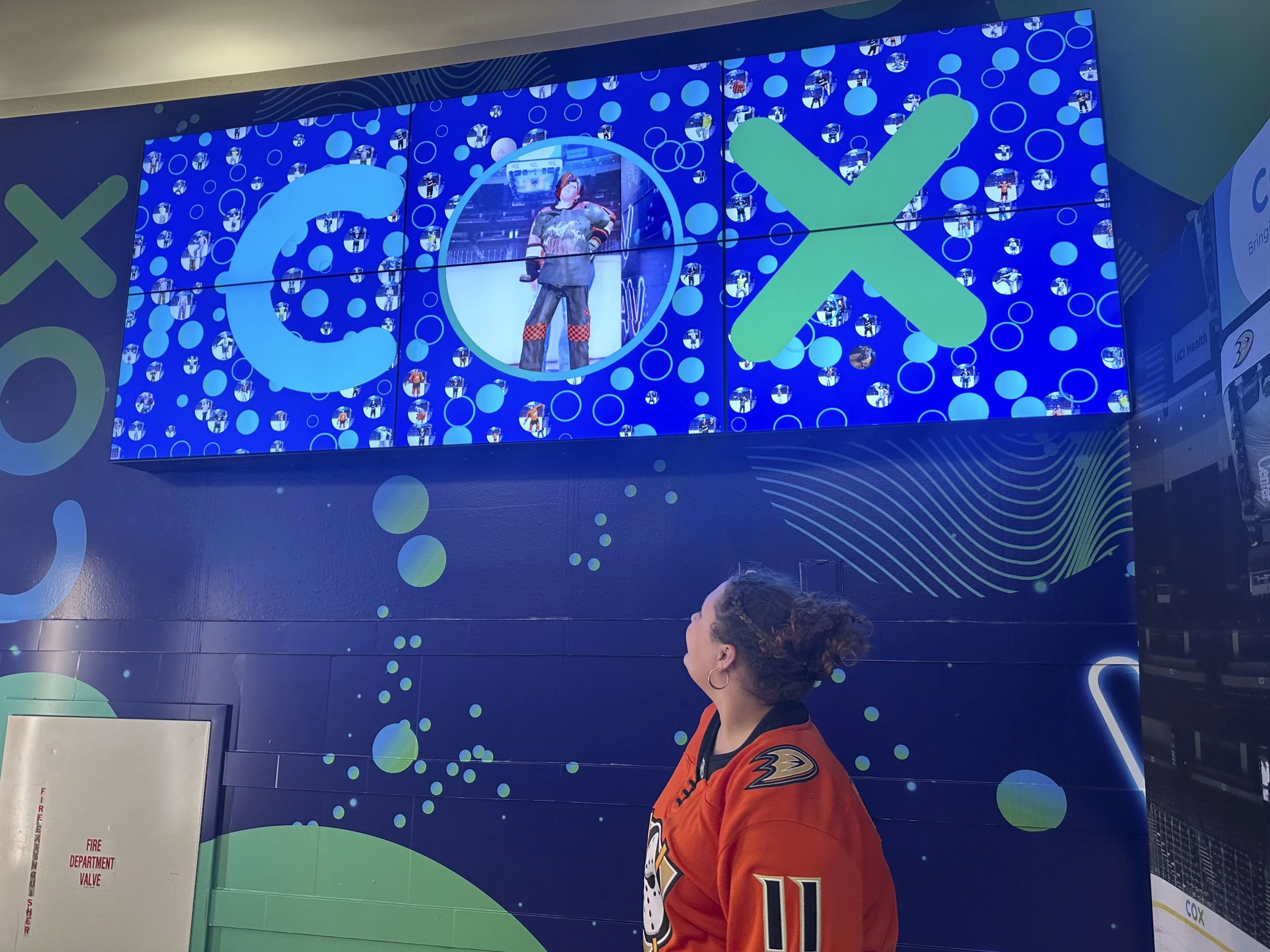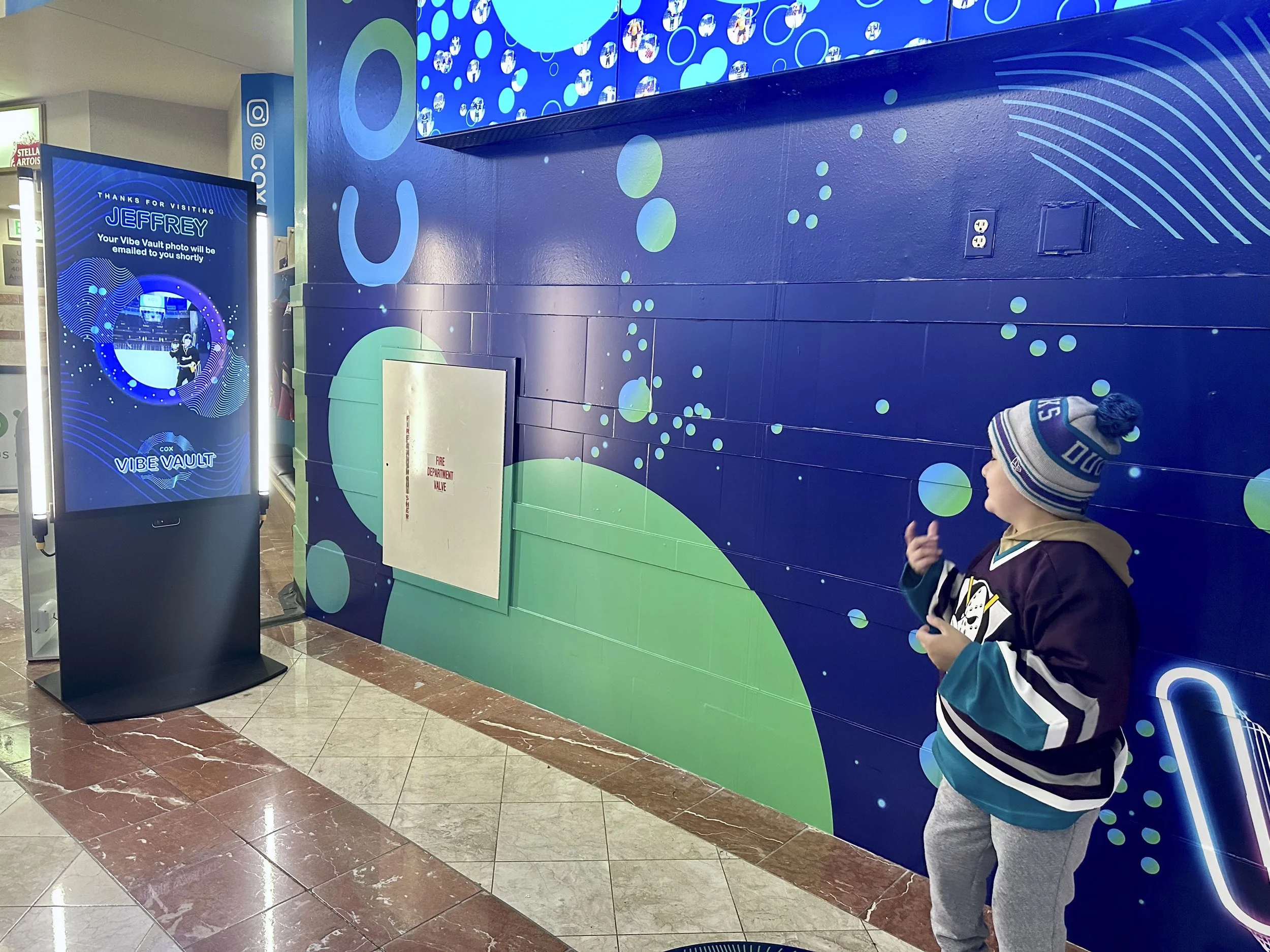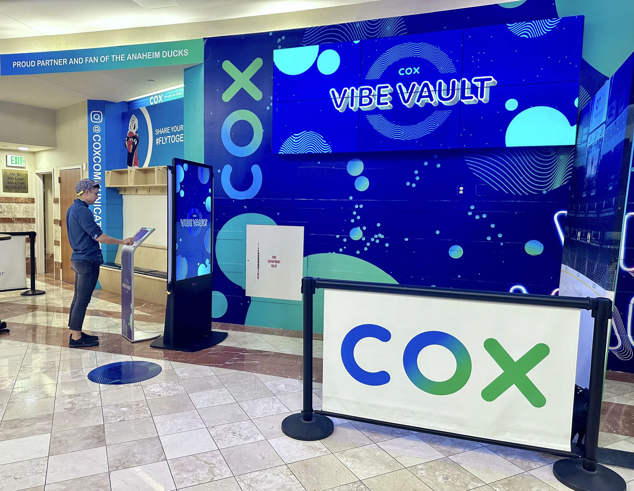 DXD created a digital photo booth — the Vibe Vault — where fans generate 90’s-themed AR images. Fans received branded emails of these images as takeaways, and they also populated a digital mosaic of memories visualized on the accompanying video wall. Our goal was to bring fans together across generations and geographical boundaries, united by COX Communications. With this activation, we were able to create personalized human connections and think beyond the initial engagement — providing the Ducks and COX with an opportunity to create permanent memories and repeat engagement outside Honda Center itself.